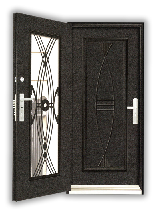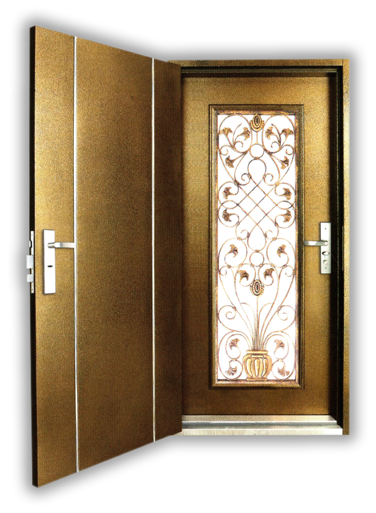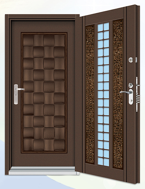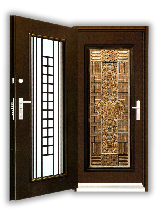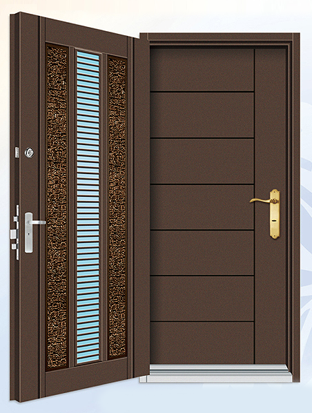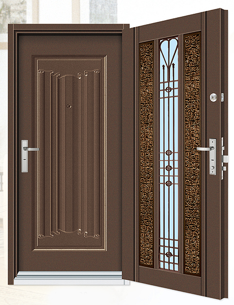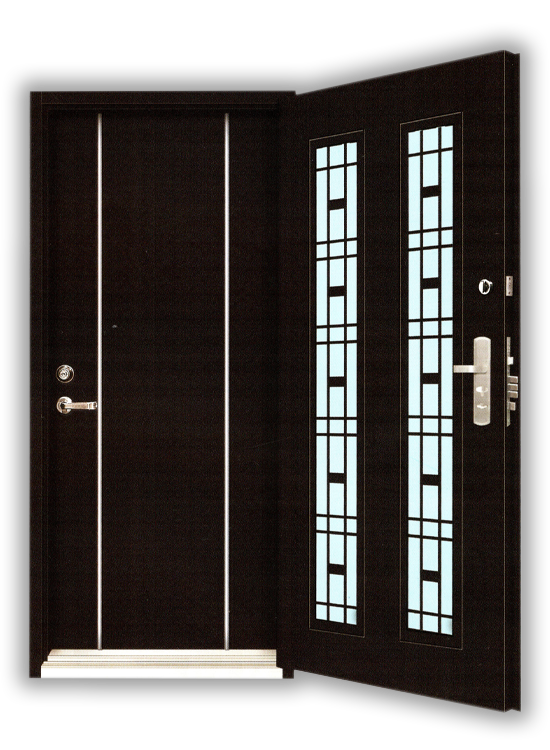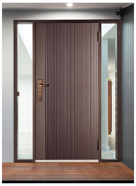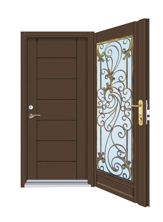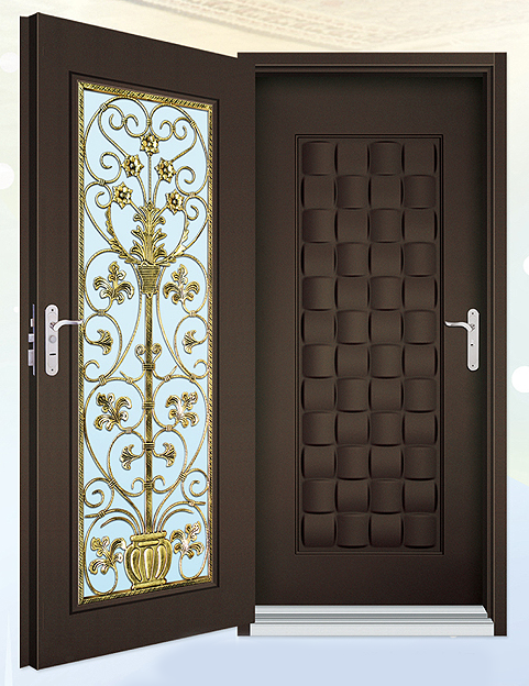 外門:精雕鑄鋁 扁鋼橫格門